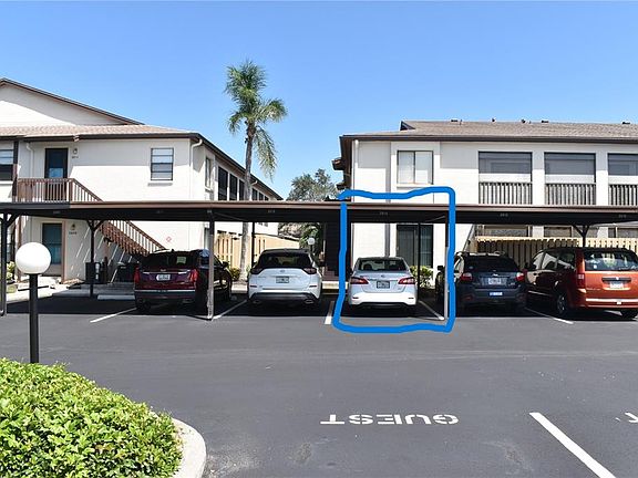 Welcome to this 1st floor, 2 bedroom, 2 bathroom, corner, end, beautifully furnished, condo with a carport, in Country Village a 55+ community. This unit boasts 1213 Sq feet with 2-bedrooms, 2-bathrooms. Step inside and you'll be greeted with a light and bright living room with laminate flooring that flows through the condo. The kitchen has vinal that looks like tile flooring. In kitchen there is a passthrough to the dining room area that leads to a large enclosed, screened, tiled lanai plus an exit door to your back area. Hot water heater is in the closet on the lanai with storage too. Some updates are windows installed 2019, A/C 2015 with a humidistat, hot water heater June 2024. This condo offers the perfect blend of comfort and functionality, soft, inviting neutral paint create a soothing ambiance throughout the condo. There is an assigned carport right out the front door which is very convenient for you. Also, within the last couple years all the outside units were painted, newer roofs, streets repaved. Country Village has a very active social calendar, also heated pool & hot tub, billiards, Shuffleboard, Bocce, picnic grilling area & even a car wash area. The clubhouse has a fully equipped kitchen, pool tables and some workout equipment. Just a few miles to Anna Maria Island, shopping, restaurants, churches, and a hospital. This condo will not disappoint you, making this an opportunity you won't want to miss.