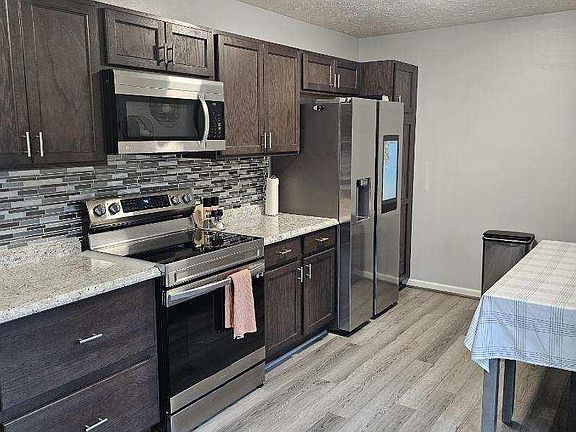 PRICE HAS BEEN REDUCED!! This property is back on market due to 1st time home buyers getting cold feet. Inspection was done and the repairs were completed. VA appraisal came in at $242,000 and appraiser required repairs are complete. SELLERS ARE READY TO MOVE!!! Welcome to this newly remodeled home! New LVP flooring throughout the living room, kitchen, hallway and the stairs. Brand new kitchen cabinets, counters, sink, faucet, ss appliances, French door to deck and 16'x10' patio. Newer paint throughout. Fenced back yard with brand NEW TUFF SHED. The theater room is a must see! Seller is leaving the projector and 3D glasses. 2022: New A-coil in furnace, ducts cleaned, new flooring, new microwave, and new vanity in basement bath. 2023: New fridge with tablet on door, range, and dishwasher convey. New toilet in hall bath. 2024: New 10'x12' TUFF SHED with split loft. Buyer to verify schools. AMA. Close to Twin Ridge II Park (2 blocks away). Bussing to Elementary and Middle schools. AMA