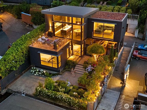 Rarely does a home blend the serenity of floating life with the functionality of land. This exceptional waterfront residence showcases stunning lake views & two private boat slips- all while offering a two-car garage, beautifully landscaped yard, & expansive Ipe deck overlooking the Gold Coast of Portage Bay. Inside, enjoy high-end details: custom steel accents, Fleetwood doors & floor-to-ceiling windows, 12' ceilings, new marble fireplace, tailored window shades, built-in speakers, & abundant storage. Stunning kitchen w/ Liebherr & Gaggenau appliances & oversized quartz island. Whether unwinding on the deck, dipping into the lake, enjoying the garden, or boating right from your backyard, this home offers the very best of waterfront living.
