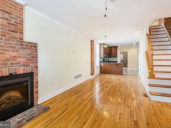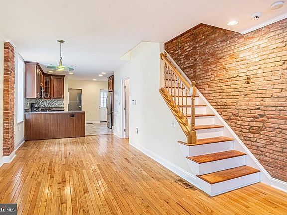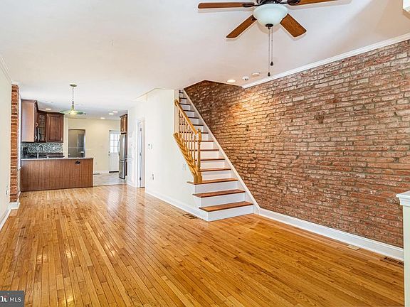 BEAUTIFULLY DESIGNED END OF GROUP CANTON ROWHOME WITH OVER 1,200 SQ. FT. OF LIVING SPACE AND A ROOFTOP DECK! Features include gleaming hardwood floors throughout, a spacious living room and dining area with exposed brick, crown molding, and fireplace, a Chef's kitchen with granite counters & ss appliances, main level half bath and laundry, a dumbwaiter from the main level to the rooftop deck level, upper level with 2 generously sized bedrooms and 1.5 baths including a dual entry bath, an unfinished basement that's perfect for storage, desirable hall access to the rooftop deck with sweeping views, a rear patio with a privacy fence, and a new roof! All this and located steps to Canton Square, Safeway, and Canton waterfront!