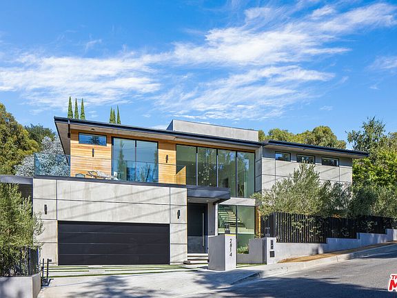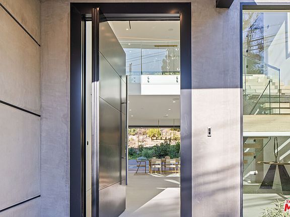 NEW CONSTRUCTION - Stunning Gated Contemporary in highly coveted Bel Air. Designed and built by M-Cubed, this modern organic is nestled in a peaceful setting & surrounded by lush landscaping. The first floor features an open floorplan with 10-foot steel pivot door, expansive 25-foot-high entry way and dining area, floating staircase, & floor to ceiling Fleetwood doors. Natural light abounds to highlight attention to detail and superior quality from tile & wide plank oak flooring, walls of porcelain, and custom wood shelving & Italian cabinetry. The sumptuous kitchen boasts Dekton countertops, custom two-tiered island, and wood paneled Wolf/Subzero appliances, perfect for entertaining. The second floor features a floating lounge flanked by windows to provide the perfect setting for morning coffee or an evening wind down. All upstairs bedrooms boast large outdoor patios to enjoy the natural surroundings. The sumptuous primary bedroom features 12ft+ ceiling height with porcelain fireplace, luxurious custom walk-in closets, and a stunning bathroom with nickel hardware and relaxing spa tub. Experience Quintessential indoor/outdoor living with seamless transition into the private and verdant backyard featuring zero-edge pool and spa, Brazilian Grapa wood deck, firepit, and outdoor BBQ. This Smart Home features 4 zones of heating and air, built in speakers throughout, camera and alarm system. Ideally located near Mulholland and in coveted Roscomare Road Elementary. Welcome Home! Please see virtual tour full video.