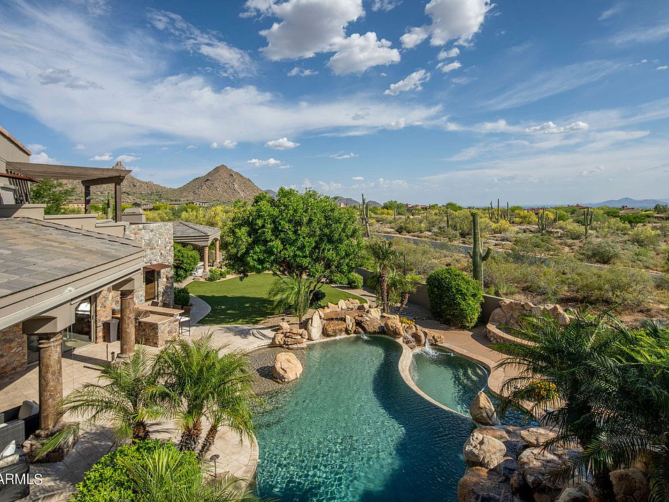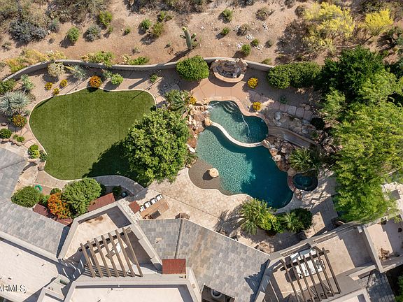 Privately gated on 3.8 acres in Merit Crossing, this estate has been remodeled with modern luxury throughout. Light-filled interiors highlight curated finishes from the kitchen with high-end appliances and a glass-enclosed 200+ bottle wine cellar, to the game, media, and gathering spaces designed for Arizona's signature indoor-outdoor lifestyle. The home features two primary suites plus two additional ensuite bedrooms, along with a 10-car garage. Offered fully turn-key with furnishings and TVs, the property also includes a private one-bedroom casita for guests and a separate building with a studio apartment, ideal for creative pursuits or collectors. Architectural renderings for a future toy barn provide an additional opportunity to personalize this exceptional estate to your lifestyle.