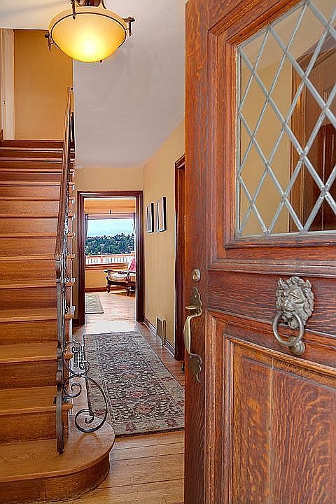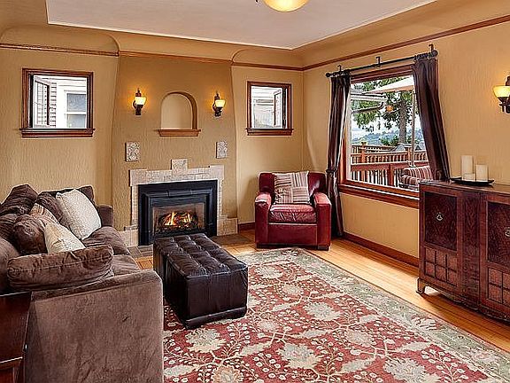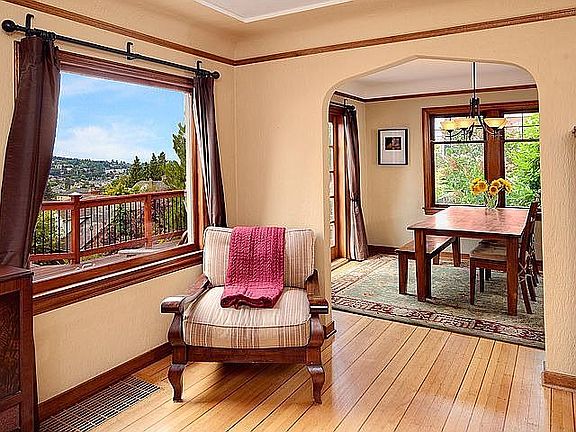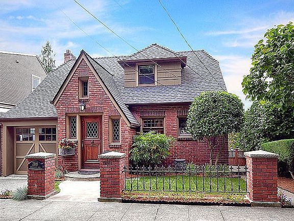 Thoughtfully restored Queen Anne Tudor w/original details updated for modern living. The gourmet kitchen has granite countertops & SS appliances & flows into the dining room. Entertain on the expansive ironwood deck off the living room w/views of Elliott Bay, Olympic Mountains & Puget Sound. Features incl: mahogany inlaid floors, restored leaded glass windows, & gas fireplace w/Batchelder tile surround. Attached garage, alley access and large, fully fenced backyard. A rare vintage treasure.