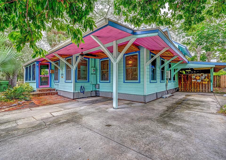 PRICE REDUCTION! Seller is motivated! Bring all reasonable offers! This is a beautiful, unique , funky home in the River District that you are are going to fall in love with! Stunning Original hardwood floors, built ins, hidden storage areas, large screened in front porch, a bedroom with a loft area, a large workshop with electric, enclosed carport, a wonderful backyard with mature landscaping, a large deck off of the master bedroom, another deck underneath it. A totally remodeled kitchen with the most beautiful countertops we have ever seen! The plumbing was replaced in 2020, new AC in 2022, appliances in 2020. The metal roof is 15 years old. The property has mango, avocado, star fruit and lychee trees. There is also a car port and a 2 car garage as well! Lewis Park is one block away. Some historical facts on this amazing property..the land was bought for it in 1877 for $100, the house was originally in Terra Ceia and was bought and moved in 1945 for $2500, it has kept it's original charm all these years. If only the walls could talk, alot of history here! Come see this gem today!