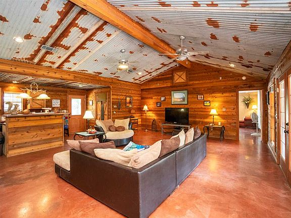 Your country paradise in the city awaits! Wide open spaces but convenient to all city conveniences. Do not be fooled... this home is MUCH larger than it appears and boasts two large living areas, one a Texan's dream with a corner bar and the other with a large fireplace. There is space galore with two master suites, plus two additional bedrooms, a very large covered porch, open kitchen/dining, tons of parking space for guests plus parking for four personal vehicles, two in covered garage and two carport.
