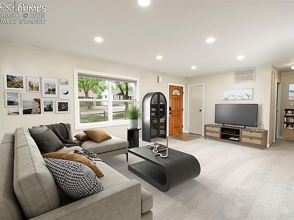 Fantastic ranch home in a well-established neighborhood with views of Pikes Peak! Move-in ready recent upgrades, including a new furnace, A/C, and water heater. Bright and spacious with an open floor plan, the home features a large front family room, updated kitchen with stainless steel appliances, LVP flooring, and a built-in coffee bar. Enjoy the bonus entertainment room, updated bathrooms, including a spa-like primary ensuite, and convenient laundry with washer/dryer combo. Step outside to your fenced backyard oasis with a patio, pergola, garden areas, sheds and a detached shop with 220V power, garage door, and lighting. Perfect for extra storage, parking, or as a great workshop space! Attached garage adds convenience. Newer carpet and windows throughout. Close to parks, trails, schools, shopping, golf, and I-25. This gem is ready for you!