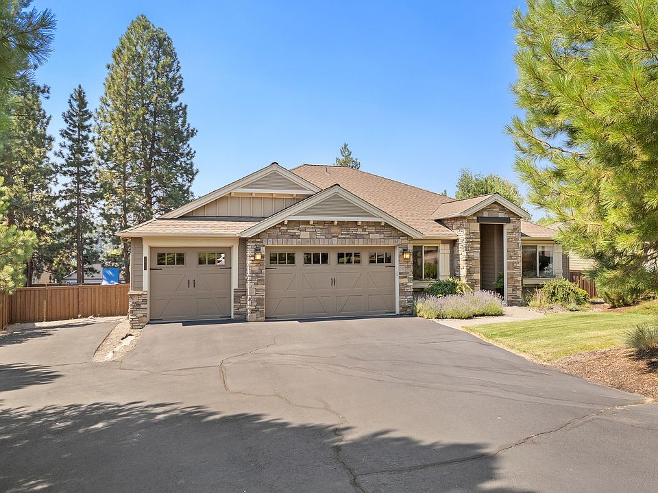 NW Style Single Level Home on .47 acre fully fenced lot w/established landscaping, raised beds & trek deck. Open floorplan offers 3 bedrooms, 3 bathrooms, 2,580 sf, dedicated office & formal/ informal dining areas. Custom features include coffered/vaulted ceilings, hardwood flooring, abundant natural light bringing the outside in. The Primary suite offers a new carpet, access to deck, quartz vanity with under counter sinks, soaking tub, privacy glass, tiled walk- in shower & spacious walk-in closet with built in's. The great room offers a stone fireplace with built in cabinetry, chef's gourmet kitchen w/ large island & features floor to ceiling windows. Guests will enjoy the 2 spacious guest suites with full baths. The ease & flow of indoor/outdoor entertainment offers nice options with three sliding doors for gathering your family and friends. Additional amenities include RV parking, a 3-car garage with built-in cabinets and workspace, laundry room with cabinets & sink. Welcome home!