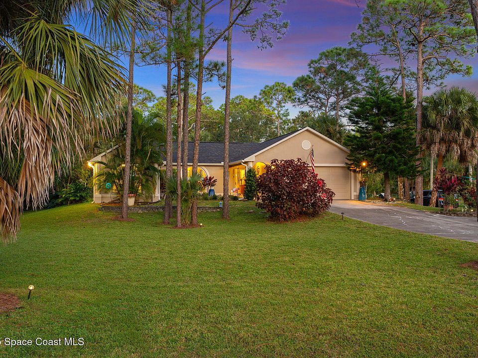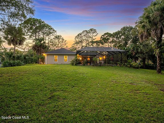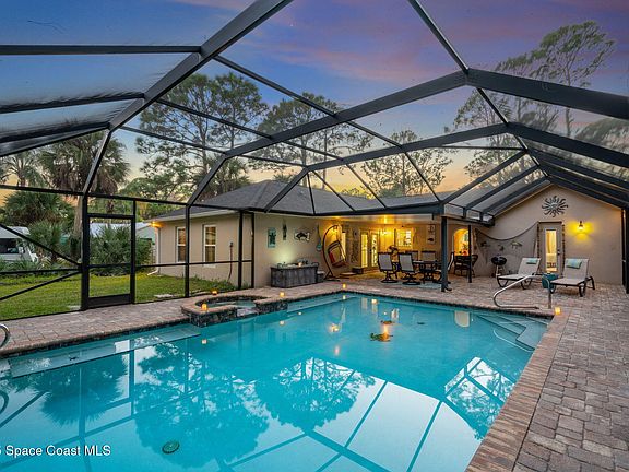 Inside, the home offers an open split floor plan with high ceilings, an updated kitchen with new appliances, a wine fridge, and a built-in coffee bar. The outdoor space is fully fenced with new pavers surrounding the pool, creating a great setting for relaxing or entertaining. Additional features include a two-car garage and a well system for water. The home sits back nicely from the road and combines privacy, function, and low-maintenance living in a great central location just 15 minutes to Melbourne Airport, 45 minutes to Orlando International Airport