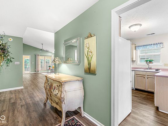 Not your average Ranch Home! Step inside to the large Foyer, Soaring ceilings in Great room/w Built-Ins, Dining Area, Kitchen w/ breakfast area & bar, all appliances included and a fantastic Split Floor Plan with primary located near the All seasons Sunroom. This one is set up for easy living with a laundry list of improvements. HVAC w/humidifier-22, Leaf Gutter System w/transferable warranty, Engineered hardwood flooring (Entry, Kitchen, Dining, Great room, hall), Brand New Beautifully tiled shower, glass door, accessories, floors & all the things in primary bath-25, Washer & Dryer-24, Custom closets in primary & 2nd Bed, New toilets both bathrooms, Newer water softener & water heater-21, motion lights both sides of home, finished garage w/workspace & SO MUCH MORE! This home sits on a quite street & backs up to a private wooded area. The property extends beyond the back fence & includes an adorable rustic shed w/shelving. Come spring you will be delighted by the 3 beautiful dogwood trees in the backyard, Japanese maple in front and nice landscaping surrounding the home. This home will is a Must See!!