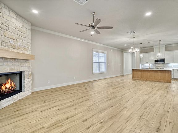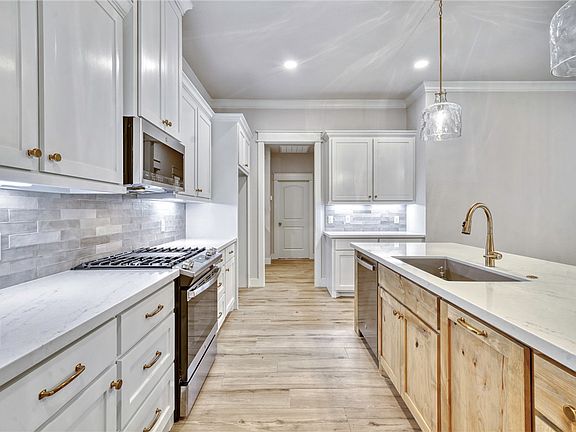 Outside, the home includes full sod, front and back landscaping with a sprinkler system, and full gutters. The exterior is a stylish mix of brick and stone, while the covered back patio comes prepped with gas and electrical hookups—for your future outdoor kitchen.