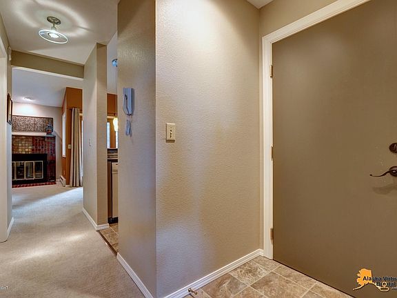 Updated and gorgeous top floor condo close to airport and Lake Hood. Vaulted ceiling, wood burning fireplace, private deck, soundproofing windows, newer heating system. Impeccably maintained with updated kitchen & bathroom, updated lighting, designer paint colors and more. All appliances stay, including W/D. Detached garage just steps away from front door.