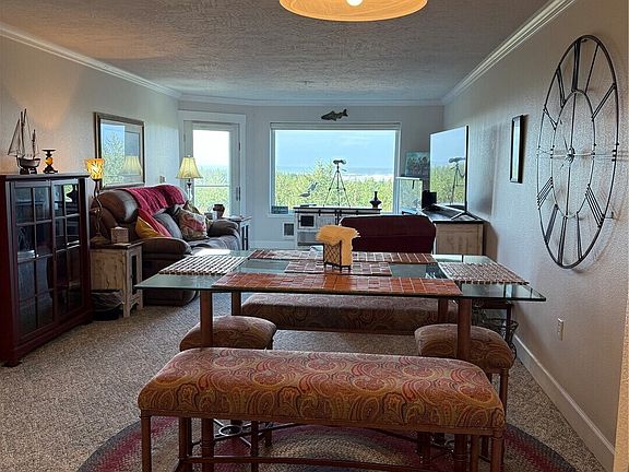 Million Dollar view for a fraction of the cost! Gorgeous Ocean Virew condo on the groundfloor. Primary bedroom faces the fabulous ocean view; bring your glass of wine and candles to use in the jetted tub for whale watching and winter storms! Patio off the primary suite and living room to allow barbecuing and sunning yourself. Even observe the Coast Guard boats training in the surf or the night time crab boat lights as they bring in their catch. Each unit has an assigned detached garage. The second bedroom is a nice size and has its own bathroom in the hall. Kitchen has all stainless appliances and granite counters.Healthy homeowners association,dues include yard maintenance, water, sewer and garbage.
