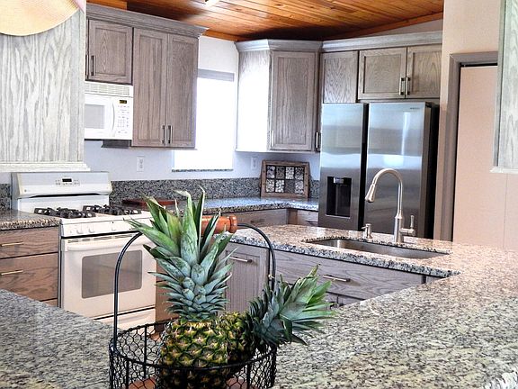 Nestled on a spacious 6000 sq ft lot, this cute 4 bedroom, 2 bath residence boasts ample space and well appointed features. The heart of the home is a beautifully updated kitchen, complete with a bar and expansive pantry, which flows seamlessly into the large living and dining areas. The master suite is a serene retreat, featuring a spa tub, walk-in shower, and ample closet space. Additional amenities include a separate laundry room and abundant storage space, including a huge downstairs area with two garage doors and two separate single doors. The outdoor spaces are just as impressive, with patios at the front and back of the house, a large pergola perfect for entertaining, and an above-ground pool surrounded by a fenced backyard and a large shed. And with the community boat ramp just a short stroll away, residents can easily access Pine Channel and enjoy excellent boating out to both the gulf and the ocean.
