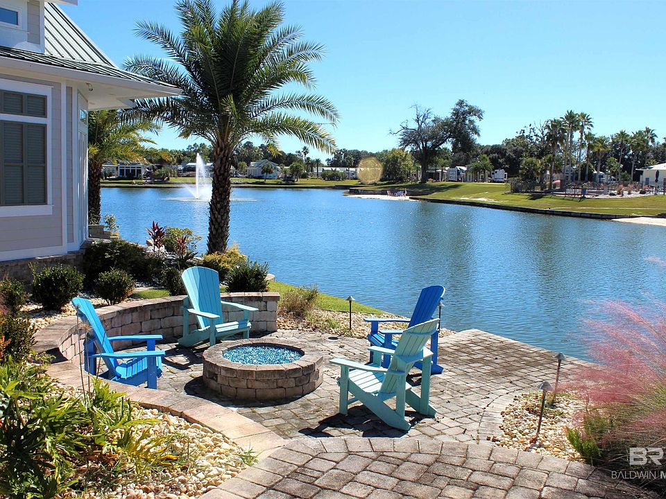 Lake Osprey RV Resort Lot #110 is a prime luxury RV opportunity on the Alabama Gulf Coast! Discover one of the best resort living communities in south Alabama with Lot #110, a versatile LAKEFRONT property perfect for full-time RV living, a vacation retreat, or income generation through the on-site management program. This beautifully improved lot features a 16' x 75' concrete pad with 30/50-amp full-service pedestals, underground utilities ready for a future coach home, and a lakefront patio area complete with colorful seating and a cozy fire pit with gorgeous lake views. The extended patio is finished with pavers and surrounded by lush, flowering landscaping, creating a relaxing outdoor oasis.HOA fees are $320 per month and include premium amenities such as cable TV, high-speed internet, water, trash, sewer, lawn care, and access to all resort facilities. Owners also have the option to build a custom coach home up to 1,200 sq. ft., following community architectural guidelines. Located in beautiful Baldwin County, east side of Elberta, AL, ownership includes access to an impressive 1,700 sq. ft. fitness center, a zero-entry infinity pool and hot tub overlooking an 11-acre terraced lake, a poolside Tiki bar with gas grills, and three pickleball courts. The resort hosts a full calendar of activities, parties, and special events, offering an active and friendly lifestyle year-round. Just a short stroll away is the Soldiers Creek Championship 18-hole golf course and driving range, making this the perfect destination for recreation, relaxation or your homebase community! Buyer to verify all information during due diligence.