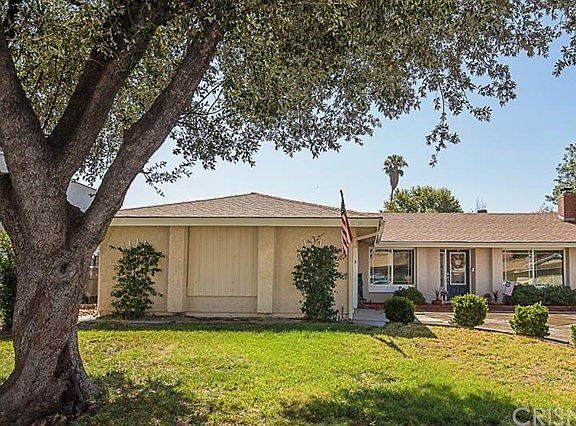 Exquisite American Beauty Bouquet Single Story home located on one of the loveliest tree lined streets in Saugus! This charming Craftsman home boasts a winding private driveway, beautifully upgraded entry, 3 spacious bedrooms and a private 4th room with elegant french doors that functions as an office, den or 4th bedroom and not one, but two gas fireplaces! The kitchen has been upgraded with beautiful countertops, pristine white cabinets, crown moldings and opens to the living room and family room! The newer roof, water heater, copper plumbing, interior paint, dual paned windows, laminate and tile flooring, upgraded walk-in master shower and upgraded kitchen make this home truly move in ready! The sprawling backyard not only offers privacy and ample room for children and pets to play, but a custom playhouse (storage shed or workshop) complete with interior lighting! No HOA, No Mello Roos and superb school district! This home will sell fast and stay in your family for years to come!