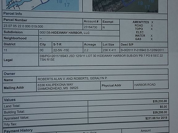 2.2 acres on a semi-cleared parcel directly on the river with additional possibility of protected docking. The parcel is a very short ride to Point A Lake along the river. This parcel begins at the recently moved drainage ditch (to the east), extends 300 feet west, over 400 feet south to the river, and includes both points at the slough entry (all measurements are approximate, survey available). The property has been surveyed, with a marker indicating required building elevations. The lot slopes very gently to the slough and river. Build on the high portion and walk easily to the river. Perc tested for regular septic systems. Permit available. HideAway Harbor has building covenants (1200 sq ft, no prefab). This parcel will be sold under tax-appraised value for quick sale.