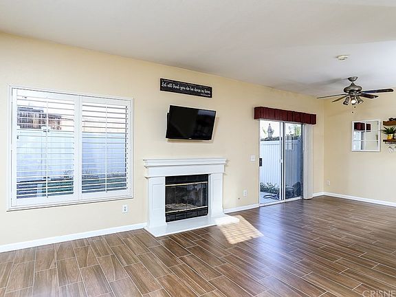 Welcome home to Brock Canyon Villas! This two-bedroom, two-bathroom townhome was the former model! BEST location in the neighborhood with PLENTY of guest parking! One of the only homes with a full driveway and a two-car, direct access garage! Drive in, close the door, get out, and go directly inside! The kitchen has new Corian countertops and a huge breakfast bar. Refrigerator included! The family room has a cozy fireplace. The downstairs powder room has a beautiful pedestal sink. New gorgeous, durable, wood-tile flooring throughout the entire downstairs. White, wood, plantation shutters on most windows. Why buy here instead of another townhome in Saugus or Valencia? The yard! Yes, your very own PRIVATE backyard with grass for a pet and concrete slab for a patio set and BBQ! Looking for NEW? This townhome has a BRAND NEW dishwasher! BRAND NEW kitchen faucet! BRAND NEW water heater! BRAND NEW garbage disposal! BRAND NEW garage door opener! BRAND NEW concrete slab! BRAND NEW sod! BRAND NEW sprinklers! Washer and dryer included! Live in the heart of the Santa Clarita Valley, walking distance to award-winning schools, shopping, and dining. The Brock Canyon neighborhood features beautiful walkways, a pool, and spa too! NO MELLOS ROOS! Welcome home!