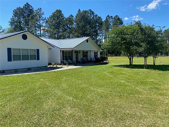 WELCOME TO SERENITY! This 3 bedroom 2 bath home offers an open concept floor plan with eat in space in the kitchen, wood burning fireplace in the family room, HUGE bonus area great for a game room, small office area that all sits on over an acre completely fenced! The covered front porch is great to drink that morning coffee or enjoy the quiet nature setting on those breezy evenings!. There is a breezeway between the "game" room and the garage that is covered & screened for a sacred space away from the elements. Metal roof is 11 years old, septic pumped/inspected within the last 5 years, previous survey (2010) on file, garden style sprinkler on site. Schedule your private tour today!