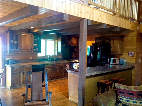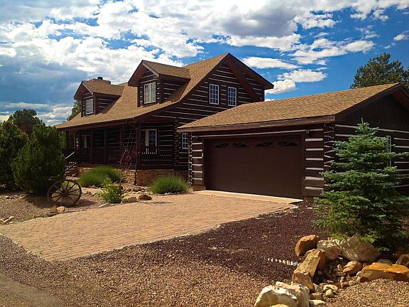 Classic Lincoln log-style cabin with chinking and wood interior. This 3br. 2.5ba + loft cabin has soaring vaulted t&g ceiling, master BR down, cozy window seat, handscraped wood flooring & very private location at end of cul-de-sac. 2 car garage can house all the toys. Enjoy the oversized back deck for unobstructed long-range views of the trees and wildlife viewing. Landscaped, paved roads, underground utilities, sewer. Near public golf course with clubhouse and restaurant. This cabin has also been a successful vacation rental property. No HOA but quarterly sewer connection fees.