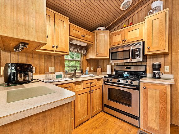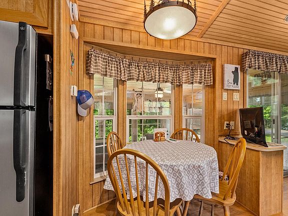 Discover a turn-key Northwoods getaway, fully furnished and ready for you—just pack your suitcase! Located across the road from Lake George, you'll have easy access to the public swimming beach and a nearby boat launch, allowing you to enjoy the water without high taxes. Enjoy the 3-season sunroom that features cathedral ceilings, stamped concrete floor, deck doors leading to the backyard patio, and a pellet stove. The kitchen is stocked with all you need for meal prep, a full bathroom, bedroom and sitting area complete the main floor. Situated on approx. 1 acre of land, a blacktop driveway, fire pit, and shed- this package deal is fully furnished.