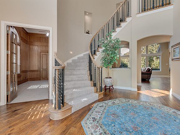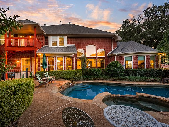 Custom Estate on 1 acre, heavily treed, private cul-de-sac adjacent to 22 acre nature park. Secluded Saltwater pool with spa & water feature. Outdoor oasis with gazebo, fire pit, waterfall, greenhouse, & 2 outdoor storage sheds. 5 bedrooms. 4 beautiful updated full bathrooms. Travertine tiles throughout. 3 inch Hardwood floors. Plantation shutters. Gourmet Kitchen with triple stainless steel sinks, granite counter tops, oversized island, double ovens, appliance cabinet, built in microwave, & walk in pantry. Butler’s pantry. Kitchen dining room with backyard views. Livingroom with pool views, stone fireplace, wet bar, and built in cabinets. Primary bedroom with back yard views, gas log fireplace, built in cabinets, ensuite bathroom with granite flooring, jetted tub, dual shower heads, & dual vanities. Huge custom walk in closet with cabinets, linen closet, cedar closet, and additional storage closet. First floor office with vaulted ceilings, luxurious hardwood paneling, built ins and a storage closet. Upstairs game room with 2 storage closets opens out onto a 2nd story balcony with stunning views and stairs to the patio courtyard below. First floor guest room with walk in closet. Jack and Jill bathroom upstairs with linen closet, built in storage, and laundry chute to downstairs utility room. Window seats with storage in secondary bedrooms. Chandeliers in dining room and entry way. Stunning curved entry way staircase. Beautiful views throughout the home of the treed lot and adjacent park.
