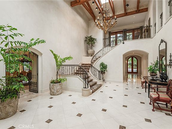 Reminiscent of a classic Beverly Hills estate, this custom designed home was built to embody timeless elegance and enduring quality. A magnificent two-story entry opens to a grand living room with fireplace, while the adjacent library impresses with rich wood paneling, a marble fireplace, and architectural detail.