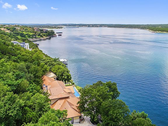 Rare Lake Travis waterfront opportunity that will take your breath away! 5.469 manicured acres with incredible views. Currently an elegant and private residence, this property has much potential as a wedding venue, a spa, or a retreat. The main house is well off the street and offers lake views from every room. There are many well-designed and carefully planned outdoor areas from which to entertain. Travertine floors, Italian light fixtures, Sherle Wagner fixtures and sinks, his and hers master baths with every comfort, media room, and huge butler's pantry for serving elegant meals in the over-sized formal dining room. Dine al fresco on the large outdoor pavilion that leads into the formal gardens which offers the perfect spot for outdoor dinner parties or receptions. Exceptional quality of workmanship with great attention to detail is evident everywhere. 5-hole putting green with water feature and sand traps, sport court, outdoor kitchen overlooking the lake, greenhouse, and even a "sandy beach" tucked away by the water! Caretaker's cottage with 3 bedrooms and 2 car garage. Possible to build more structures or a large home. Water available. Perfect in every way, this property is located a short 30 minutes from downtown Austin and minutes away from all Lakeway has to offer. Fenced and gated for privacy and security. Bring your imagination and imagine the possibilities of Charmwood!