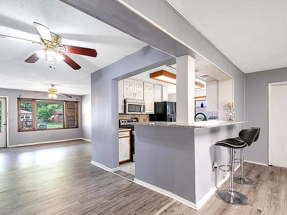 Experience the perfect blend of comfort and convenience in this charming 3-bedroom brick ranch-style home. The freshly painted interior features LVP flooring in the bright living, dining, and family rooms. Two bedrooms offer original wood flooring and share a full bathroom, while the master bedroom boasts a private 1/2 bathroom with a shower. The open concept kitchen impresses with ample storage, an updated eat-in bar featuring granite countertops, and all kitchen appliances included. Customize countertops to your liking. A shared laundry and mechanical space streamline tasks. The family room opens to a covered patio and fenced backyard with a storage shed. Parking is a breeze with a carport and attached garage with opener. The roof was replaced in September 2022. Offered "as is," a Pre-Inspection Report is available. Nearby schools, parks, river walking path, stores, and I-35 add to the convenience. Don't miss out, schedule your showing today for a glimpse of your future!