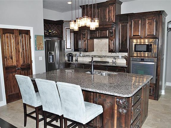 If you are looking for a customized home loaded with upscale features close to Tinker and all amenities, this is it! This home was designed from the ground up from the soaring 16-ft ceiling with grand cathedral beam in the living room, hardwood floors, and built-ins galore. Located in a fabulous community with a pool, playground, and walking trails. This one of a kind home also boasts oversized guest bedrooms, and hard to find Australian closet with dual dressers! Granite galore with added storage throughout. The sprinkler system, 27-foot garage bay, STORM SHELTER, and fabulous fenced backyard complete this home!
