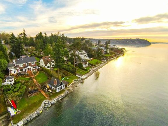 Present meets Past on Puget Sound! On a quiet street w/like-estates, past the carriage house & down the private drive, stands this charming storybook home on 90' of private beach. Restored in 2007, the house, surrounded by layered grounds, offers a natural flow between interior & exterior living areas combining spacious & intimate rooms w/spectacular water, mountain & island views. The right blend of timeless elements & modern comforts. A delightful guest cottage at the water's edge. Welcome!