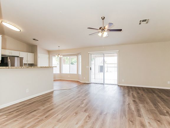 Out back, a covered patio extends the living space and opens to a low-maintenance yard designed for practical outdoor use. With its efficient layout, durable finishes, smart home features, and proximity to major Phoenix routes and destinations, this home offers a well-rounded living experience. Apply now!