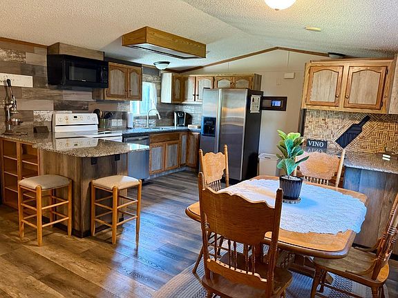 Well-kept 1991 2BR/2BA manuf home, 1,280 sf single-level living on lg corner lot framed by pines in quiet park near Yellow Lake & Sand Greens CC. Fully furnished & turnkey—move in ready. Open kitchen w/ oak cabs, stocked essentials. Spacious LR & MBR suite w/ att BA. Energy-efficient Anderson windows & LVP flooring (2018). Starlink internet equip installed, svc transferable. 2-car carport, shed w/ mower & tools. Lot rent $452.49/mo. incl water/sewer/waste. Buyer approval by mgmt req’d.