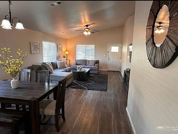 Near new home located in the Stallion Springs area of Tehachapi. The 3 bedroom 1.75 bathroom single story home is move in ready and backs up to the old Horsethief golf course (currently closed). The home has luxury vinyl flooring throughout, granite counters, modern appliances and a walk in pantry. The utilities include natural gas, public sewer, public water and Race fiber optic internet. The large backyard is fenced, includes a large shed and has plenty of room for your kids, dogs or RV parking. The home has low maintenance landscaping, a tankless water heater, central heat and AC and a vaulted ceiling in the living room. Add this one to your list and come take a look for yourself. Seller is willing to assist with closing costs or a loan rate buy down!