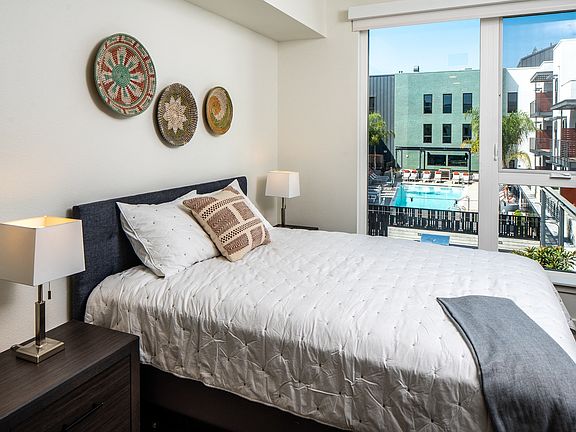 - Exterior features: Barbecues and fire pits, Bicycle storage, Business Center, Courtyard, Media Room, Moveable Kitchen Islands, On-Site Maintenance, On-Site Management, Outdoor Furniture and Dining Areas, Service from AT&T and Comcast available, Smart Thermostats and Mobile Access Entry Doors, Stainless Steel GE Kitchen Appliances, Studios, One-, Two- & Three-Bedroom Floor Plans, Tesla & Universal EV Car Charging Stations, Under Cabinet Lighting in Kitchen, Upgraded Roller Shades throughout, View Type: Sky Deck with Views of Bay Area, Walking distance to BART, Wi-Fi in Amenity Spaces