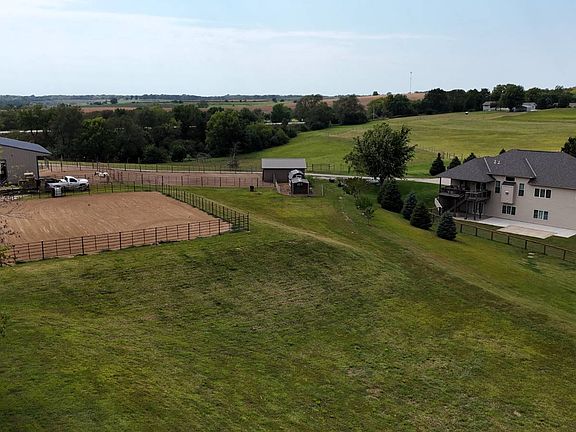 You've found the perfect equestrian haven and hobby farm right here in SW Iowa! This property really has it all. Two parcels included in this sale, with land totally 10.53 acres, M/L. With 4,200 sf of finished interior living space, M/L, this beautiful single story home provides the comforts of modern living boasting a large great room: including spacious kitchen, dining area, living area with fireplace, as well as small open office space. Covered back deck, just off the dining area, adds more informal dining or early morning coffee retreat to watch the sunrise. Main floor laundry room located next to your 3 car garage entrance provides the ease of shedding dirty garments before heading into the great room. You don't want to miss the the Master Retreat, which allows views of your back yard and horse barn. Large walk-in closet, ensuite bath with separate toilet, separate jetted tub and walk-in shower, dual sinks and an abundance of storage! Rounding out the main floor is a separate hallway leading to 2 good sized bedrooms and full bathroom. But wait there more. Main floor provides open access to the basement which is another finished retreat! Kitchen, living room, 2nd Master Suite, an additional good sized bedroom and 3/4 bath, as well as 2nd laundry hook-ups. Living area allows direct outdoor access to another open patio. The 3 Car Garage is hardwired for a generator and has TV cable. Now for the outside! On the House Parcel, there is 4.19 acres, M/L. Electrical, Propane, Septic, and private Well, 100x80 groomed outdoor Riding Ring, 2 Horse Barns, 2 chicken coops, small storage Shed and fruit trees. Nearest to the riding ring is the largest of the horse barns, which boasts electrical, Metal fencing, cement floor, 5 stalls, hay loft and office space. This barn is currently set up to house both large working horses and mini horses. The smaller of the barns is a birthing barn with cement floor, 2 stalls and storage space. Two chicken coops with electric fencing, small garden add to the start of a hobby farm. In the SE corner of this lot is small storage shed. Near this shed, there is potential to create access to highway 2. The second parcel has 6.34 acres, M/L. Has established electric only and potential for additional building. Wild Plum trees can be found on south side of this parcel. This parcel has been improved with electric fencing and cross fencing and links to the House parcel with metal fencing and gates to allow grazing horses to return to their stalls. Property is close to Waubonsie Equestrian trails, Sidney Rodeo, and Battle of the Bulls. There are several local large animal veterinarians and Hay providers. So much to offer for the Horse lover and potential to build on the idea of creating the perfect Hobby Farm. All this, with direct hard surface access, modern conveniences and no covenants!