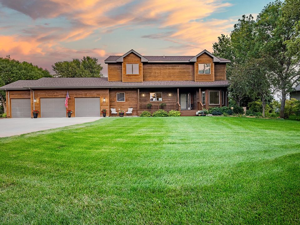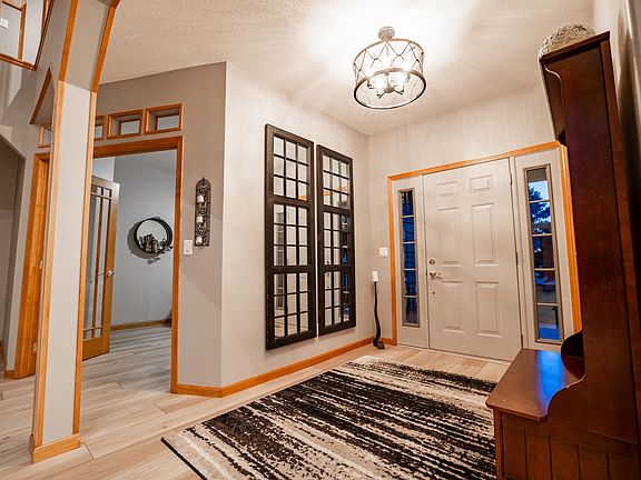 Stunning views of Lake Mitchell! Fall in love with the gorgeous serenity of this home. The tree lined property sits on over 1 acre of land with spectacular sunrise views over the lake. The main floor has an open concept, grand vaulted ceilings, stone fireplace and new flooring! Primary suite covers the entire 2nd floor. In the basement, enjoy two more bedrooms, bathroom and living space. Prepare to fall in love!