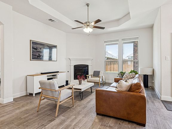 Welcome to 2817 Faro, a beautifully appointed home in the desirable Silverado community of Aubrey. Inside, the open layout boasts elegant tray ceilings, crown moldings, and graceful archways that add timeless character and a true touch of luxury. This thoughtfully designed residence features four spacious bedrooms and a warm family room anchored by a cozy fireplace, creating the perfect gathering space. The chef’s kitchen is a true highlight with stainless steel appliances, a gas range, a large island, and abundant cabinet space - an ideal setup for both everyday living and entertaining. The private primary suite is a light-filled retreat with a wall of windows overlooking the backyard, a spa-inspired bath with a garden tub and separate shower, and a generous walk-in closet. Upstairs, a versatile bonus room offers endless possibilities as a game room, media space, second living area, or private suite and includes its own full bath for guests or family. A three-car garage ensures plenty of parking and storage, while an extended covered patio provides a comfortable setting for outdoor living and entertaining. Residents of Silverado enjoy a wealth of resort-style amenities, including a sparkling pool and splash area, a modern clubhouse, pickleball and basketball courts, a dog park, and scenic walking trails. The neighborhood also offers multiple parks, a playground with a picnic area, and a charming pergola with outdoor lighting, perfect for community gatherings. Conveniently located near Highway 380 and the Dallas North Tollway, Silverado provides the perfect balance of community living with quick access to shopping, dining, and major employment hubs across North Texas. This home offers the ideal combination of luxury, function, and location - ready for its new owners.