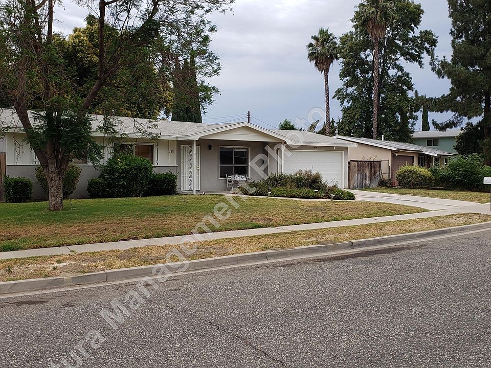 This is a cozy, single-story family home contains 1,040 sq. ft. of living space. It has 3 bedrooms and 1 bathroom with 2 car garage and fenced backyard with patio. The home has new paint throughout. The bathroom has a new vanity and faucet. The kitchen has off-white cabinets, new countertops, sink and faucet. It also has a gas stove and white appliances. The rent is $2400, deposit is $2400 and is offered with a one year lease. This property is available 8/1/19.