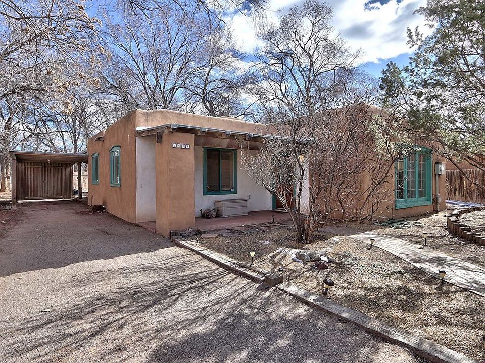 Quintessential southwestern character in this very private adobe casita. Home is graced with thick adobe walls, wood beam and plank ceilings, open floor plan, large windows, built in bookcase, & kiva fireplace; replete with the charm you expect in a Hap Crawford property. All of this in a wonderful location tucked between Old Town and the Bosque. Great access to just about everything!Hot water radiant heat keeps the home toasty, while the classic kiva FP adds warmth & grace. The home sits on an irregularly shaped lot behind an adobe wall, it is beautifully private. Oh my gosh, a Gardener will relish the potential for this garden. What a wonderful opportunity to purchase a small home (no additions here!) in a beautiful neighborhood & community. Hurry on this one, it will go fast!