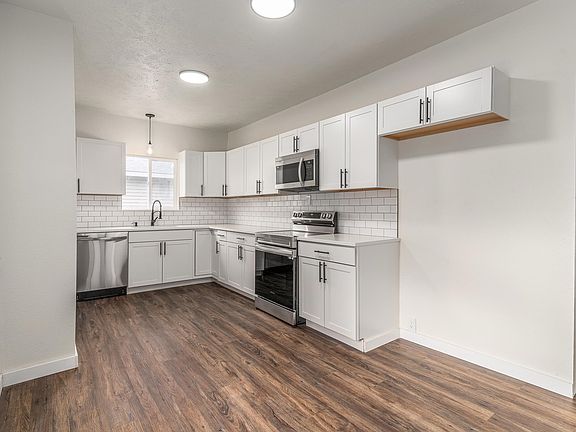 BOM due to last minute financing falling apart. Recently updated home in a quiet neighborhood. Just north of the Spokane River, this 3 bedroom, 1 bathroom home features fresh paint, new flooring and carpet, a new kitchen with white cabinets, quartz counters and stainless steel appliances. The main level has 2 bedrooms and a bonus room which would make a great playroom or game room, while the upstairs has the 3rd bedroom with plenty of room. Outside has a large fenced back and front yard, a good sized driveway for plenty of parking and an outside entrance to a large basement for plenty of storage and utility access.