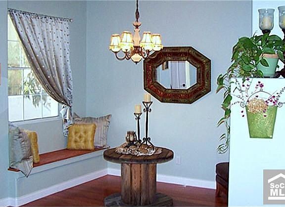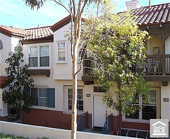 Great value for a 3 bedroom PLUS bonus room. Great interior location on a private walkway in community. Tastefully decorated with beautiful hardwood floors in living and dining areas, as well as all bedrooms. Remodeled kitchen features updated wood cabinetry, newer slate tile floors and stainless steel dishwasher. Dual fireplace adds warmth to both living and dining areas. Warm designer paint colors throughout. Baths are updated with slate floors. 2 large secondary bedrooms are separated from private master suite and has a private balcony. Large spa style bath with shower, separate soaking tub and dual sink area. Enjoy the extra living space with the downstairs bonus room, and could be used as spare bedroom or a home office. Direct access 2 car garage with built in storage. Association amenities include resort style pools and spas. Attend top rated Tustin Ranch schools. Very low Mello Roos!