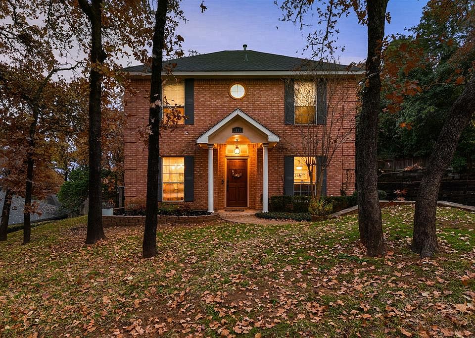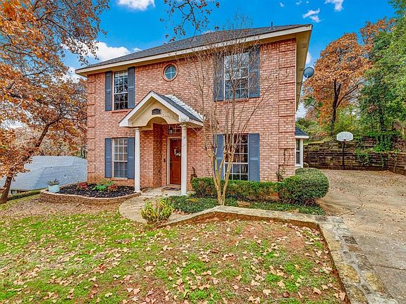 Beautiful 2 story brick traditional on an over-sized, heavily treed lot. Enjoy your morning coffee on your master bedroom balcony overlooking the peaceful, serene backyard. Master bath renovations feature a large walk-in shower and a relaxing garden tub. Feel far away from it all while entertaining on the covered patio while still close to major highways. All bedrooms are up, centered around a beautiful den or study area. Features an eat-in kitchen with a seated window. New dishwasher in 2018 and all new wood floors upstairs in 2018. New water heater and fresh paint in 2019.