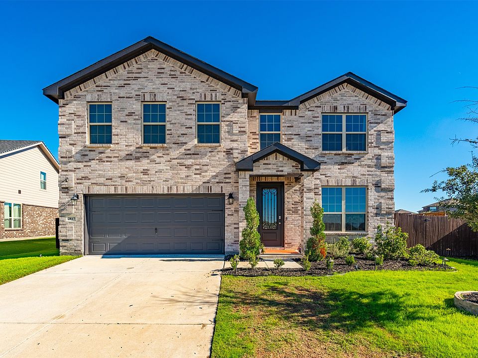 Welcome to 2817 Scoria Lane! This stunning 5-bedroom, 5 bathroom home in Chapin Village exudes quality and style, with no expense spared in its design and upgrades. Open floor plan with main living room open to kitchen and casual dining area. The massive kitchen boasts a quartz waterfall island, quartz countertops, a walk-in pantry, and a butler’s pantry, ideal for any chef. Enjoy the beauty and durability of porcelain wood tile throughout, with cozy carpet in the bedrooms and bonus room. The spacious Primary bedroom has sitting area and full en suite with separate shower, garden tub, dual vanities and walk in closet. Home office with glass French doors for privacy. The upstairs media room with stadium seating and game area provide perfect spaces for family fun, while the versatile bonus room can serve as an extra bedroom, office, or secondary living area. Set on a generous corner lot over a quarter-acre, the outdoor space features a large covered patio and expanded gathering space with accent lighting, perfect for entertaining and outdoor meals. With all its premium updates, this home stands out above current new builds—come see for yourself!