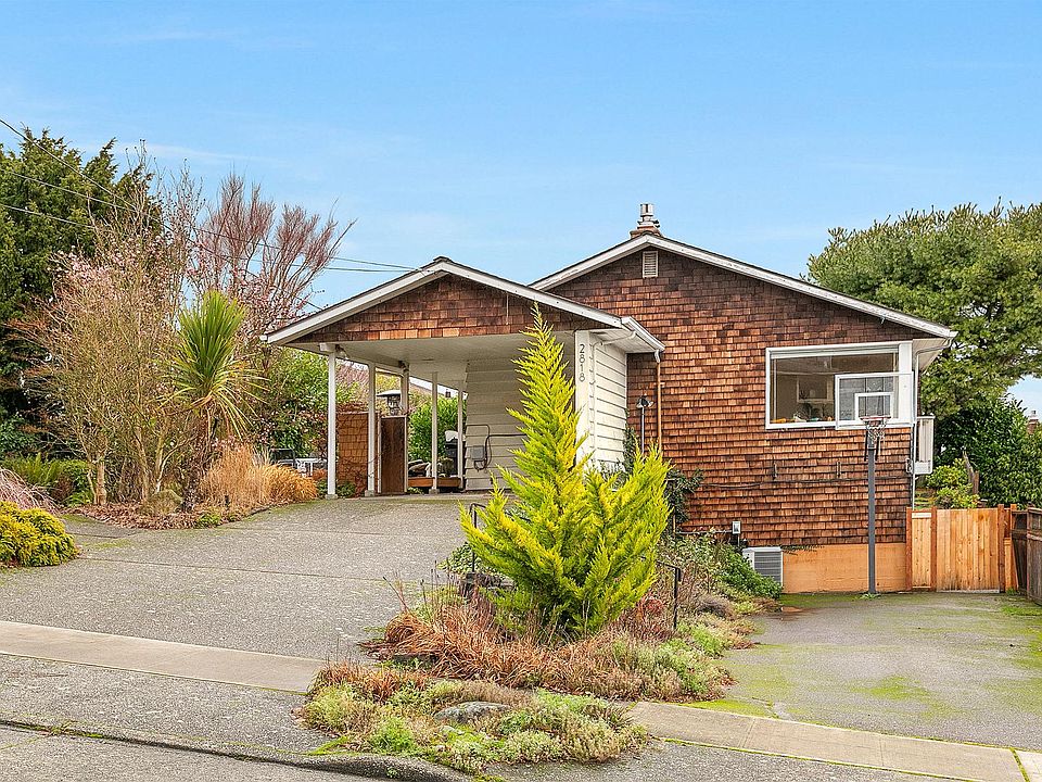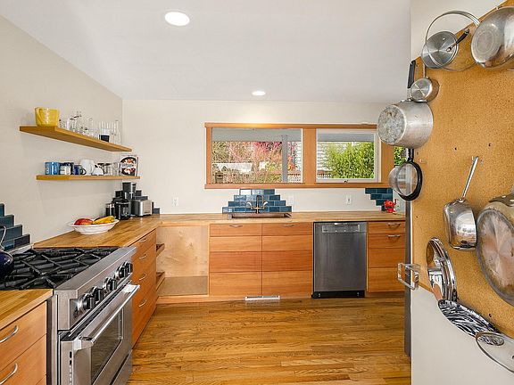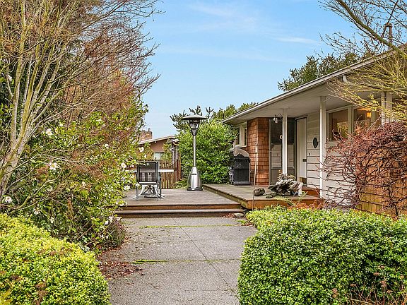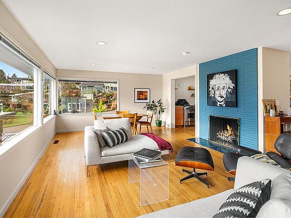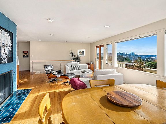 Stunning Magnolia View Home with Modern Easy Comfort Located on a short cul-de-sac with amazing views, surely one of Seattle’s best-kept secrets, this split-level, open-air home has a large, open living/dining room, with a wall of windows offering stunning views of Mt. Rainier and downtown Seattle. Decorated in mid-century modern style, it has minimalist touches that include a classic Eames leather chair. The main (upstairs) kitchen was redone in June 2017 and is finished in handmade pine and oak cabinetry, with butcher block counter, a BlueStar range, a Fisher & Paykel refrigerator, and a Miele dishwasher. The master bedroom has a queen-size bed with a nearly new organic cotton mattress. A sliding door opens from this bedroom onto a back deck with a cedar soaking tub. Blackout window treatments give you the option of reducing bedroom light to a bare minimum. The house has three bathrooms. The master bath features an extra-large walk-in shower and a cedar-lined walk-in closet. There is an additional upstairs bedroom (across from the Master) and main floor bathroom. The lower level includes a kitchenette with refrigerator, and a bar, and was redone in June 2018 with handmade wooden cabinetry. There is a queen-size Westin Heavenly Bed in its main bedroom and two double beds in the back room (which can be used as an office). A gas insert fireplace keeps this level warm and toasty. The third bath and laundry area is also found on this level. There are four distinct outside areas on this 7,600 sq. ft. property: the pergola, with pristine mountain view and privacy from neighbors; the lower patio deck; the back deck (off the master bedroom), with cedar soaking tub; and the front porch deck, with outside table and chairs. A lower driveway offers parking for as many as four cars, and easy private access to the house’s lower level. Tenant responsible for utilities