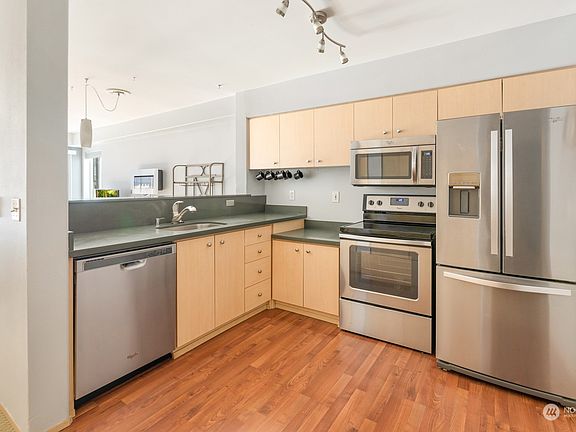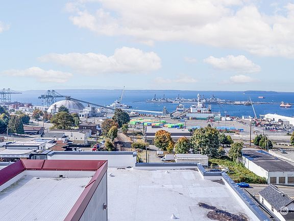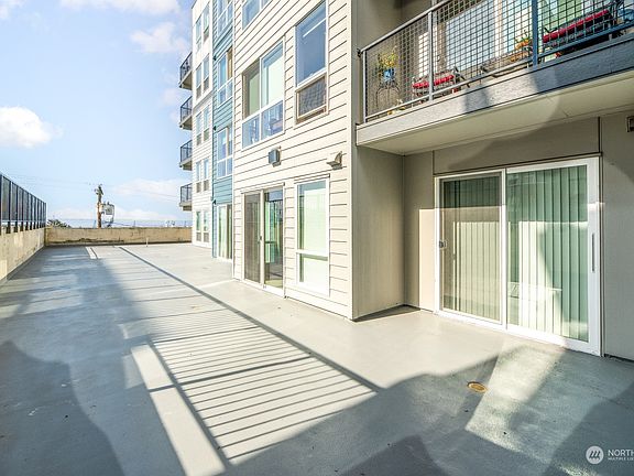 Improved Price! Beautifully updated 1 bed/1 bath condo w/ VIEWS of the Everett Waterfront! Most other units are balcony, this unique unit has a full patio w/ easy entrance to common area rooftop water views. Great layout with perfect flow from the updated kitchen to dining/living area, one large bedroom and an additional room that could work as an office. Relax & Enjoy the Fitness Center, Secure Entry, Private Garage w/ Assigned Parking Space, recently refurbished ROOFTOP DECK for get-togethers and Sunsets. Ideal location in downtown Everett near restaurants, shopping, Events Center, Navy Base, The Sisters Restaurant and Co-Op, and easy access to I-5. This complex is impeccably maintained with low HOA dues. NO RENTAL CAP!