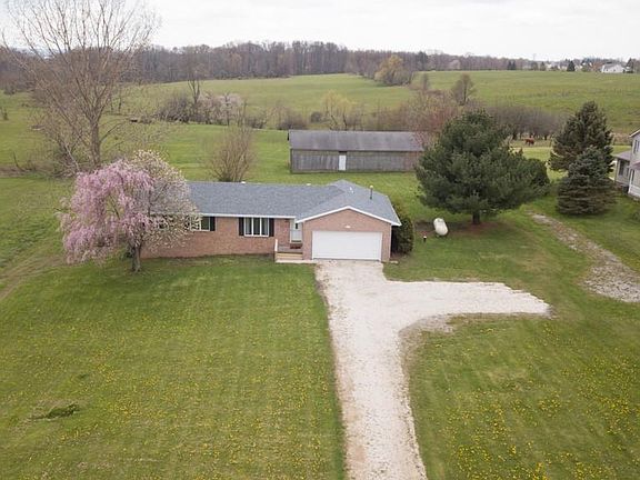 Right between two county lines is where this Brick, Ranch style home is located. It is situated off the road on just barely 2 acres that backs up to a pasture and a babbling creek. The current sellers have poured some love into this home. Upon the entrance, you are greeted by a large open concept living area with newer flooring throughout (2018). You will be led into the galley style kitchen with new cupboards (2018), appliances (2018), countertops (2018), and a gorgeous subway style backsplash (2020). The laundry area is on the level. All bathrooms have been redone (2018). This home is the true definition of move-in ready with no expenses spared. The furnace, A/C, and roof were all new in 2018. The walkout basement was completely waterproofed with a lifetime transferable warranty 2020. Did I mention the chain link fence off the back of the home for your furry friends or the large outbuilding Contact your favorite realtor today to get you in.