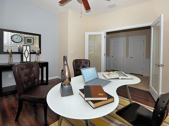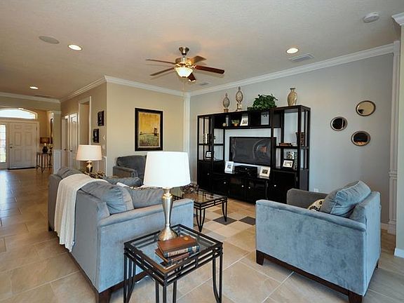 With a modernly designed floor plan, the 2,045 square feet Lantana is D. R. Horton's most popular single story plan. The 9'4" ceilings enhance the already spacious feel of this open concept home, and upgrades throughout including fully tiled living areas and crown molding make this home feel grand yet inviting. The finely appointed kitchen includes granite countertops, thirty-six inch cabinets, a corner pantry, and a large island that overlooks the great room and dining area. A powder bath is conveniently located off of the living area for guests. The spacious master retreat overlooks the back yard and includes double closets, a granite double vanity, and separate shower and garden tub. Upon entering the home, the front two bedrooms and second full bath are offset to the right, and the fourth bedroom is down a hallway to the left, creating a nice added privacy for those rooms. At the back of the home, a covered lanai provides the perfect place to relax or dine alfresco. With the option to have either three additional bedrooms or two bedrooms and a den, the Lantana is a versatile plan that can fit the needs of any family. Photos are of model home only. Additional color schemes and features are available.