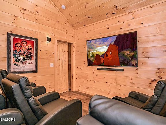 Located in the desirable Smoky Cove Community, this well-appointed cabin offers a strong layout ideal for high-performing short-term rental use. The property features four bedrooms, each with a private en suite bath, maximizing guest capacity and rental appeal. Additional income-driving amenities include a game loft and dedicated private theater, both highly sought after in the Smoky Mountain rental market. The open-concept main level is designed for durability and guest comfort, featuring vaulted ceilings, a stacked-stone gas fireplace, and large windows that enhance natural light and overall guest experience. The kitchen includes upscale cabinetry and stainless steel appliances, supporting larger groups and extended stays. Outdoor features continue the value with a stacked-stone fireplace, adding another rentable entertainment space. Smoky Cove is a proven resort community offering easy year-round access with no steep roads, along with a seasonal pool and picnic area, which increases booking demand. Positioned in one of the top-performing short-term rental markets nationwide, this property presents an excellent opportunity for investors seeking a high-end addition to their Smokies portfolio with strong guest demand and long-term upside.