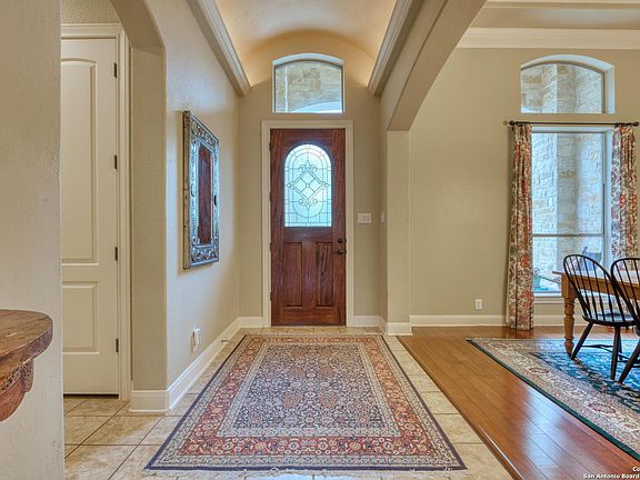 Stately. Elegant. Private. Timeless. Impeccabley Maintained. Single Story Floor Plan (plus large game room on 2nd level). 50+ PRUNED Oak Trees. 40' Covered Patio for outdoor entertaining. Chic Pool w/WIFI lighting and water features. 1.3 Acre Lot (back yard totally enclosed). ELECTRIC CAR CHARGER (NEMA 14-50) and RV outlet (NEMA TT-30R) 3-Car Garage. Interior architectural elements including art niches, ceiling coves and domes. Massive storage in attic, equipped with extra insulation in roof decking. Fiber Internet. All major systems replaced: Water Softener 2016, 2- HVAC SYSTEMS REPLACED 2017, Dishwasher 2020, 2-Water Heaters replaced 2021, Roof 2024. River Way in River Crossing is conveniently located in Spring Branch, right off of the junction of HWY 281 and HWY 46, quietly tucked back off of the street, yet with immediate access to all amenities and necessities. HEB, HOME DEPOT, and other proprietary shops and restaurants, medical services are less than 5 minutes from home. *Guadalupe River access in the neighborhood private park, tennis courts, and grilling area.
