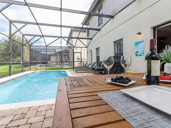 Discover a beautiful two-story 4-bedroom, 2.5-bathroom FULLY FURNISHED home with a captivating POOL in the desirable Westside Tuscany community. It's in a super convenient spot just minutes away from Disney Parks, Sunset Walk, and Margaritaville, golf courses, restaurants, parks and more. The living area opens up to a screened-in pool facing the west, and you also get a cool cabana bath and peaceful forest views. Upstairs, there's a big main bedroom with its own bathroom that has a large tub, separate shower, and two sinks. Three more bedrooms share another bathroom on the second floor. Feel free to utilize the brand-new washer and dryer, as well as the updated garage door switches, pool heater, and pool cartridge filters. Additionally, the AC unit filters have been replaced for optimal performance. The community takes care of the yard, basic cable, and internet, so you're all set there.